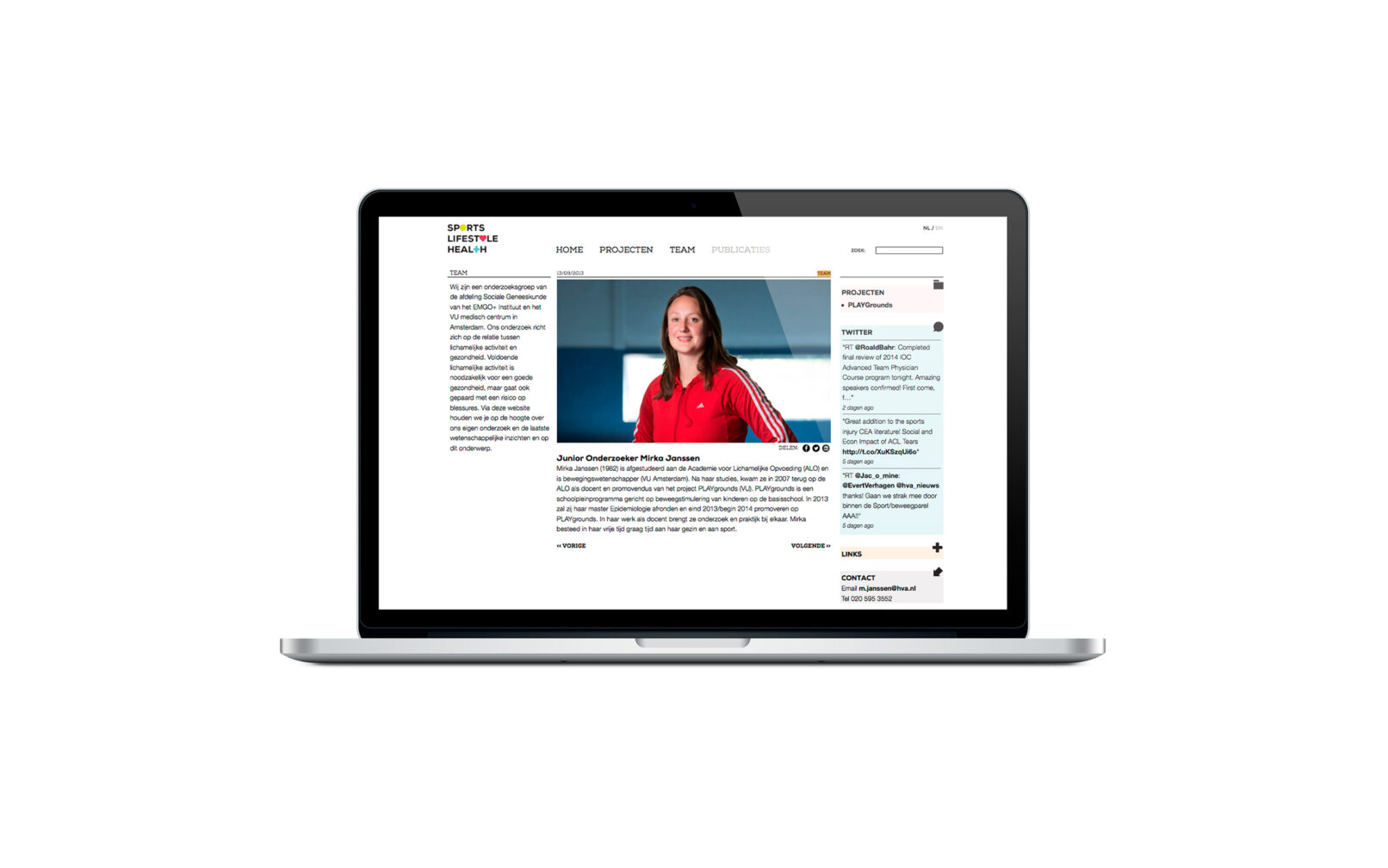 Een gezamenlijke brainstrom als start, leverde veel inzicht over de huidig stand van zaken en de wensen en eisen van de onderzoeksgroep Sport, Lifestyle en Health van het VU medisch centrum. Op basis van het gemaakte moodboard volgde een uitwerking in beeldtaal, kleur, typografie met uiteindelijke output een logo en een uitgebreide tweetalige website/blog. Verder een aantal grids waar de groep zelf mee uit de voeten kan voor een folder, visitekaartjes en presentatie.